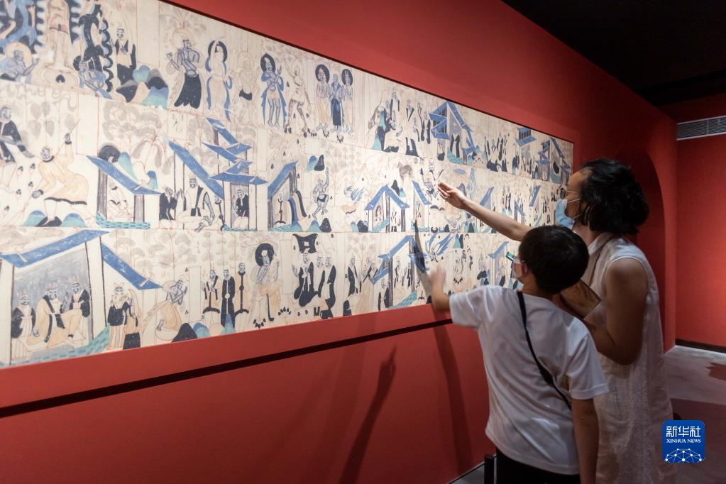 “遇見敦煌 光影藝術展”將于10月4日在遇見博物館·上海靜安館開展。3日,部分媒體及觀眾提前參觀體驗。該展以敦煌文化藝術為核心,以藝術家重繪的200余幅敦煌石窟壁畫作品為基礎,通過3D光雕技術和數十臺4K超清設備,在投影面積達1300平方米的空間中展現敦煌石窟的藝術魅力,為觀眾帶來沉浸式體驗。新華社記者 王翔 攝