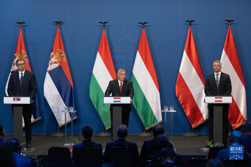 匈牙利、奧地利和塞爾維亞三國領導人3日在匈牙利首都布達佩斯舉行會晤,一致同意加強合作打擊非法移民。新華社發(弗爾季·奧蒂洛攝)