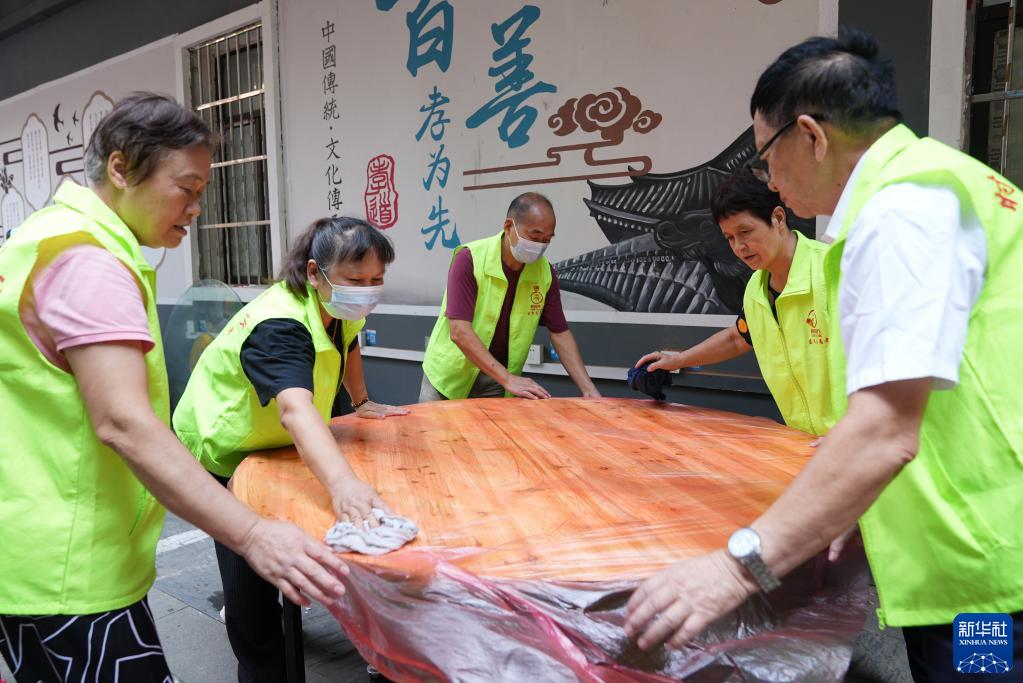 在南昌市東湖區火神廟社區,“時間銀行”志愿者在社區義務勞動(9月29日攝)。