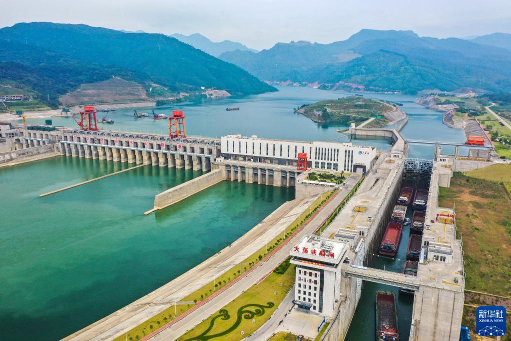 這是建設中的廣西大藤峽水利樞紐工程和已經投入使用的船閘(2022年9月29日攝,無人機照片)。