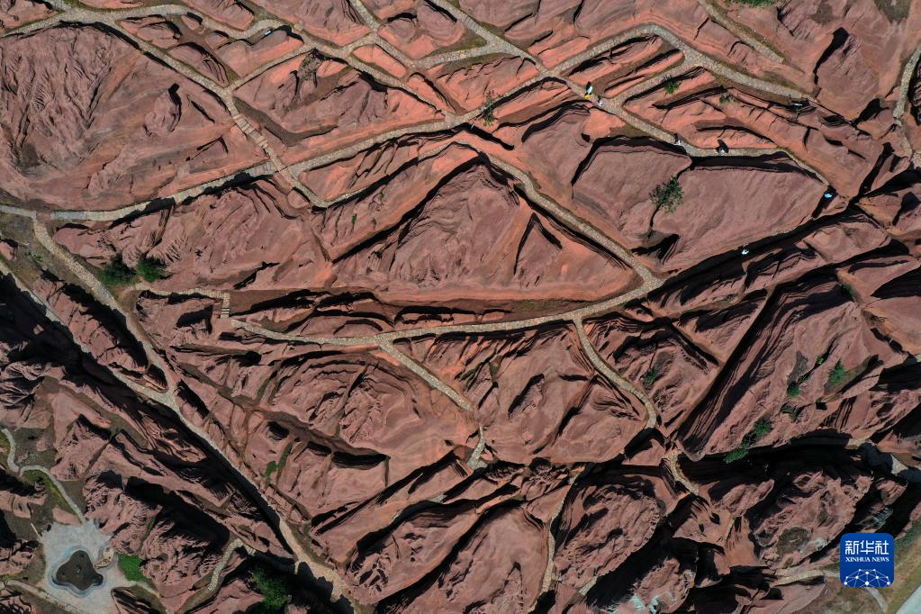 10月3日,游客在重慶市酉陽縣紅石林地質公園內參觀游覽(無人機照片)。