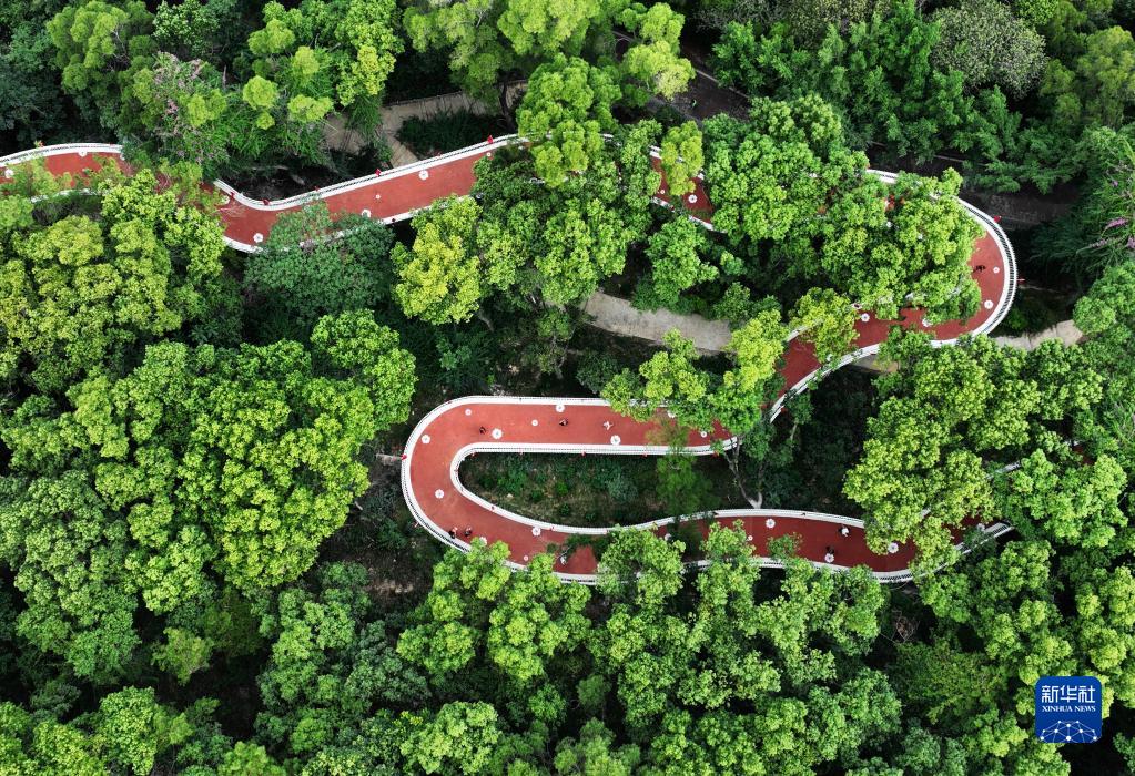 這是10月1日拍攝的福州金雞山公園茉莉花生態廊道(無人機照片)。