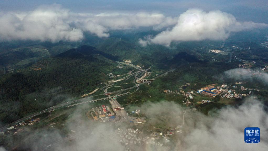 這是廣西百色境內汕昆高速路風光(10月4日攝,無人機照片)。