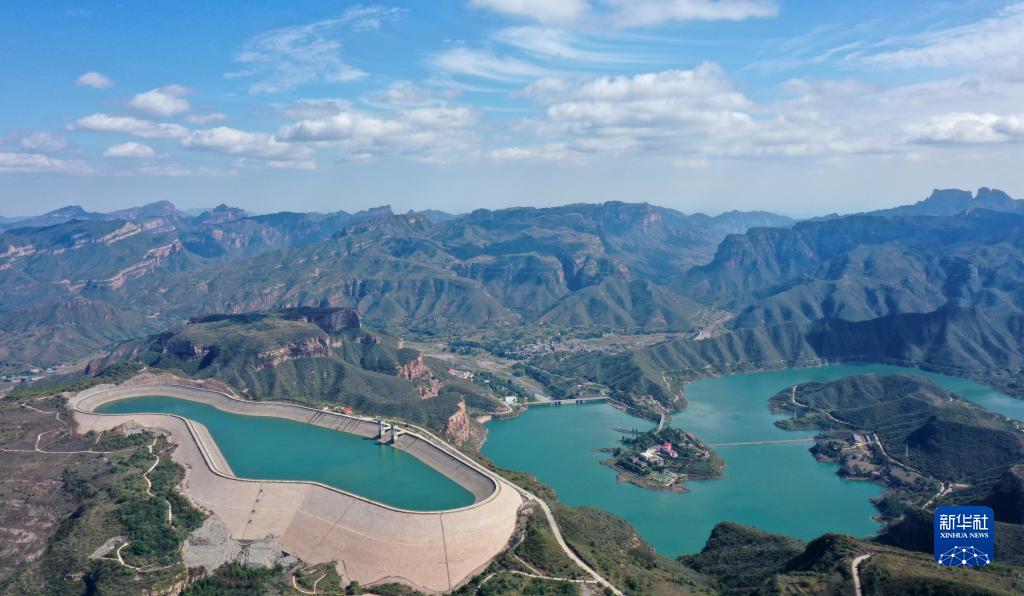 這是10月4日在河北省石家莊市井陘縣測魚鎮拍攝的張河灣水庫(無人機照片)。