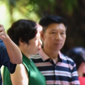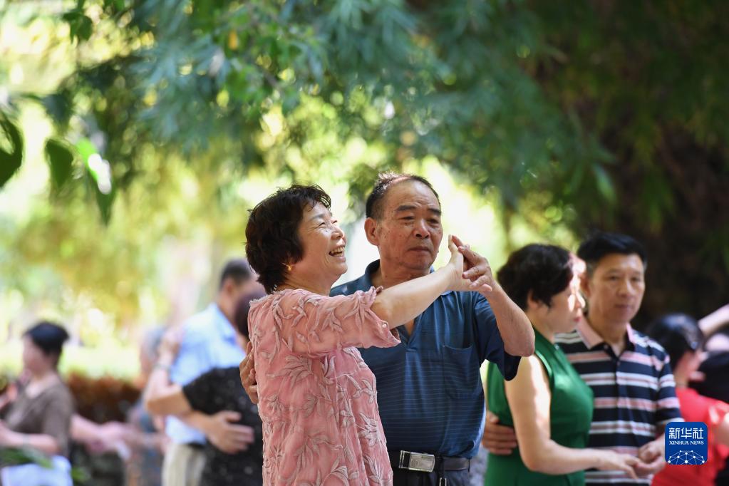 10月4日,福州市金山公園內老人們在跳舞休閑。