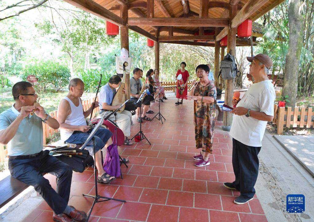 10月4日,福州市金山公園休閑長廊內,老人們在即興演唱。