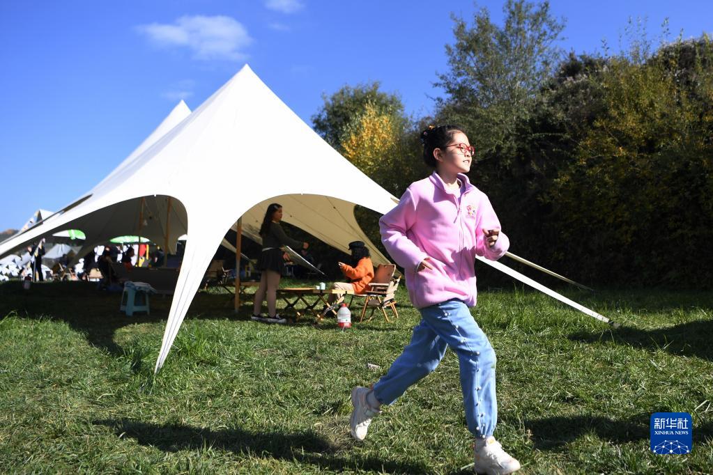 10月4日,市民在甘肅省蘭州市石佛溝一處露營地休閑。
