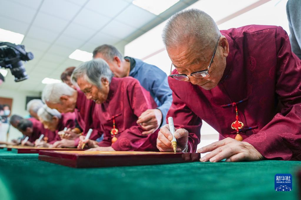 當日是重陽節,侵華日軍南京大屠殺遇難同胞紀念館邀請9位幸存者以及他們的后代,一起描壽桃、聽白局、聊今夕變化,共度重陽節?;顒又?,9位老人在手印盒中按下手印并簽名,留存歷史記憶。