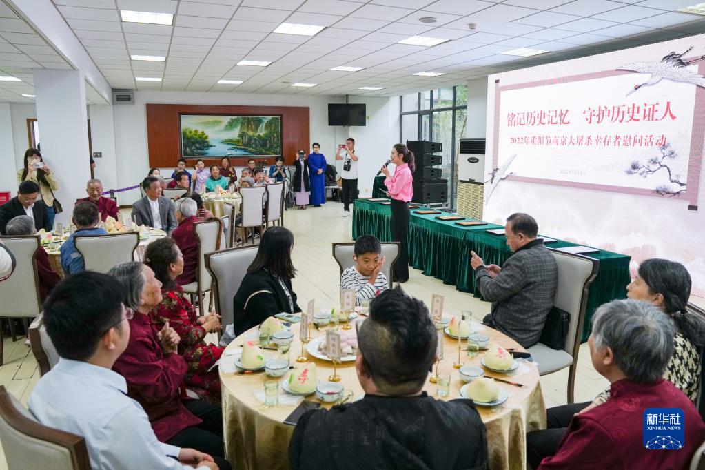 當日是重陽節,侵華日軍南京大屠殺遇難同胞紀念館邀請9位幸存者以及他們的后代,一起描壽桃、聽白局、聊今夕變化,共度重陽節?;顒又?,9位老人在手印盒中按下手印并簽名,留存歷史記憶。