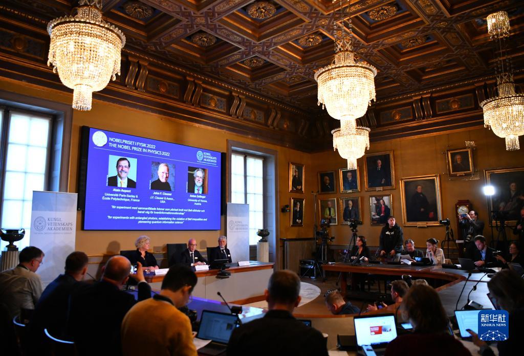 瑞典皇家科學院4日宣布,將2022年諾貝爾物理學獎授予法國科學家阿蘭·阿斯佩、美國科學家約翰·克勞澤和奧地利科學家安東·蔡林格,以表彰他們在“糾纏光子實驗、驗證違反貝爾不等式和開創量子信息科學”方面所做出的貢獻。