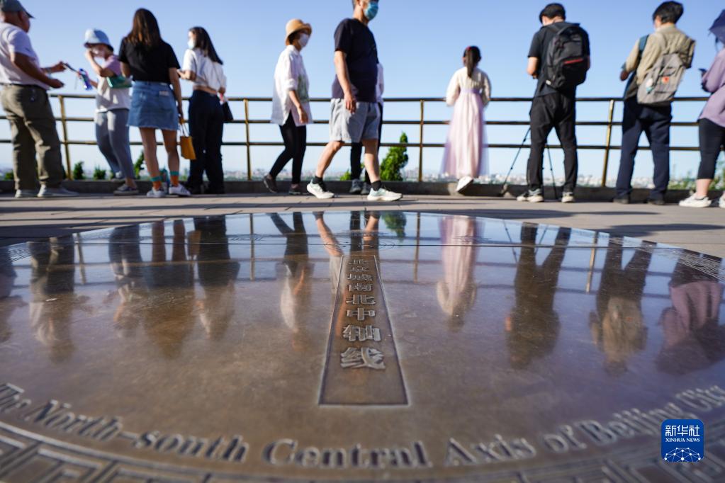 2022年9月18日,游客在北京景山上觀賞中軸線景觀。 新華社記者 陳鐘昊 攝
