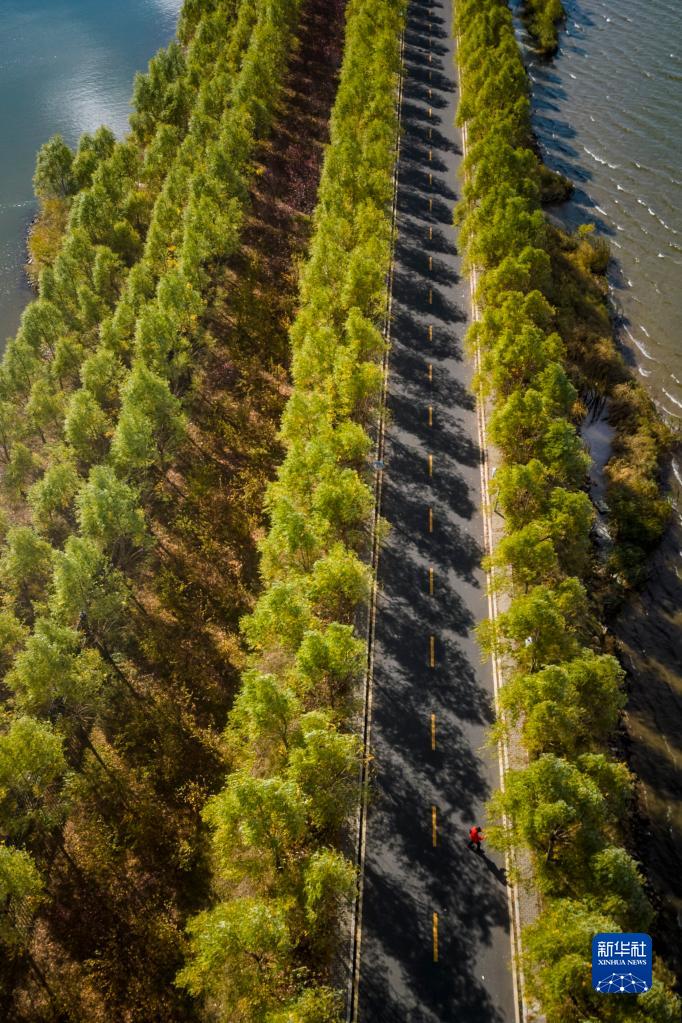 這是10月4日拍攝的哈爾濱呼蘭河口濕地公園內的景色(無人機照片)。