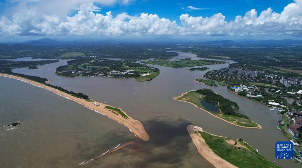 這是2022年10月3日在海南省瓊海市博鰲鎮拍攝的萬泉河入??冢o人機照片)。