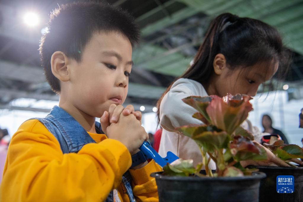10月5日,在天華百卉園內,小朋友在學習種植技巧。