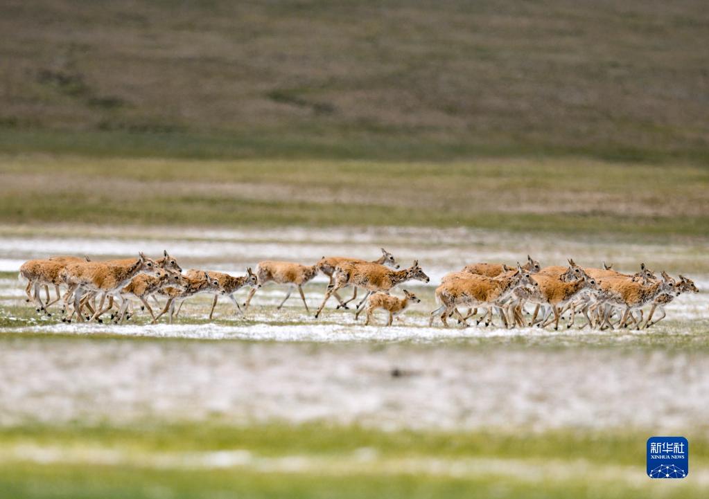 這是在羌塘國家級自然保護區內拍攝的藏羚羊(2022年7月11日攝)。新華社記者 晉美多吉 攝