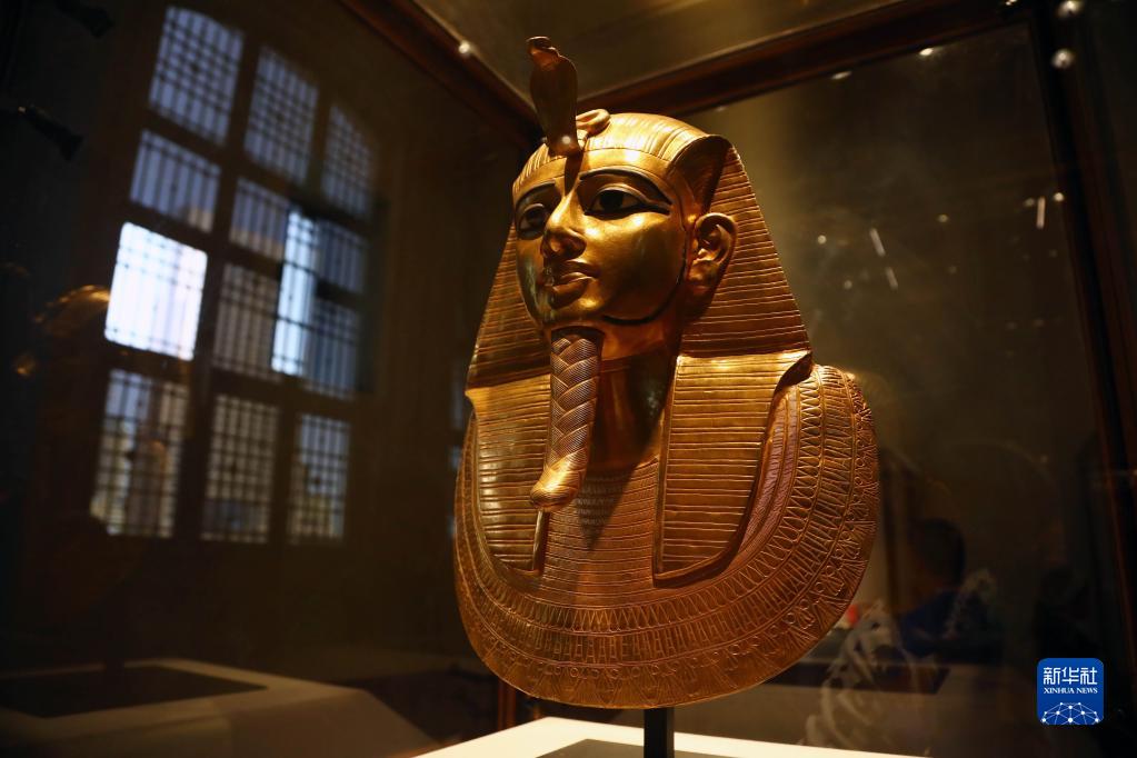 這是10月3日在位于埃及開羅的埃及博物館拍攝的法老蘇瑟奈斯一世的金面具。 新華社發(艾哈邁德·戈馬攝)
