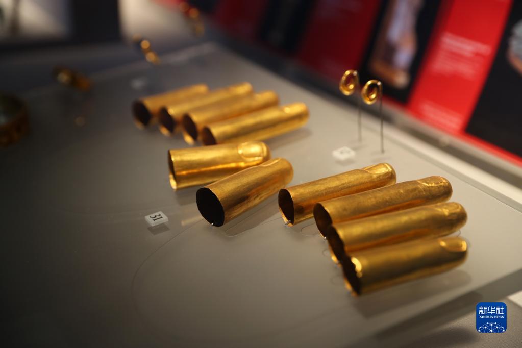 這是10月5日在位于埃及開羅的埃及博物館拍攝的金質手指套。 新華社記者 隋先凱 攝