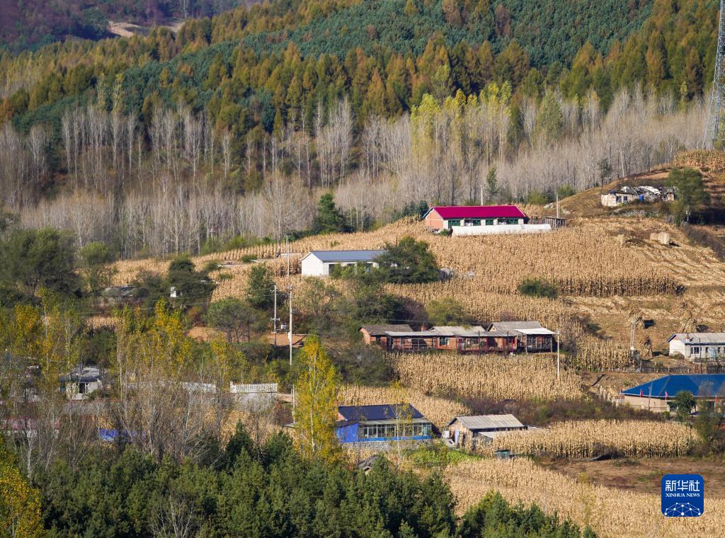 這是10月5日拍攝的吉林紅石國家森林公園附近的村莊。
