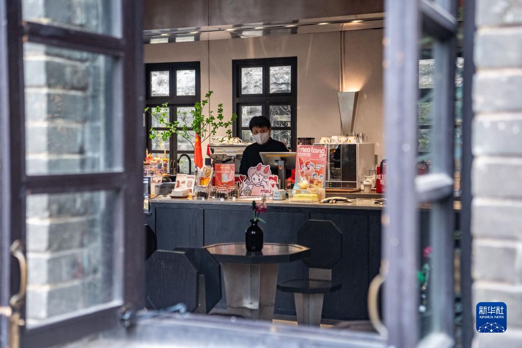 10月6日,在重慶市渝中區一處由老建筑改建的小型商業綜合體“小黃樓”內,工作人員在制作咖啡。