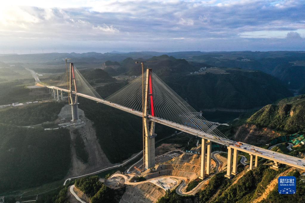 10月6日拍攝的貴州龍里河大橋施工場景(無人機照片)。