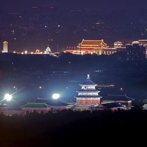 當日北京天氣晴好,夜色下,地標性建筑宏偉壯觀。