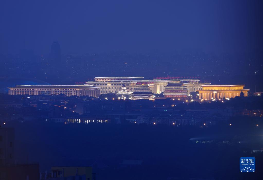 當日北京天氣晴好,夜色下,地標性建筑宏偉壯觀。