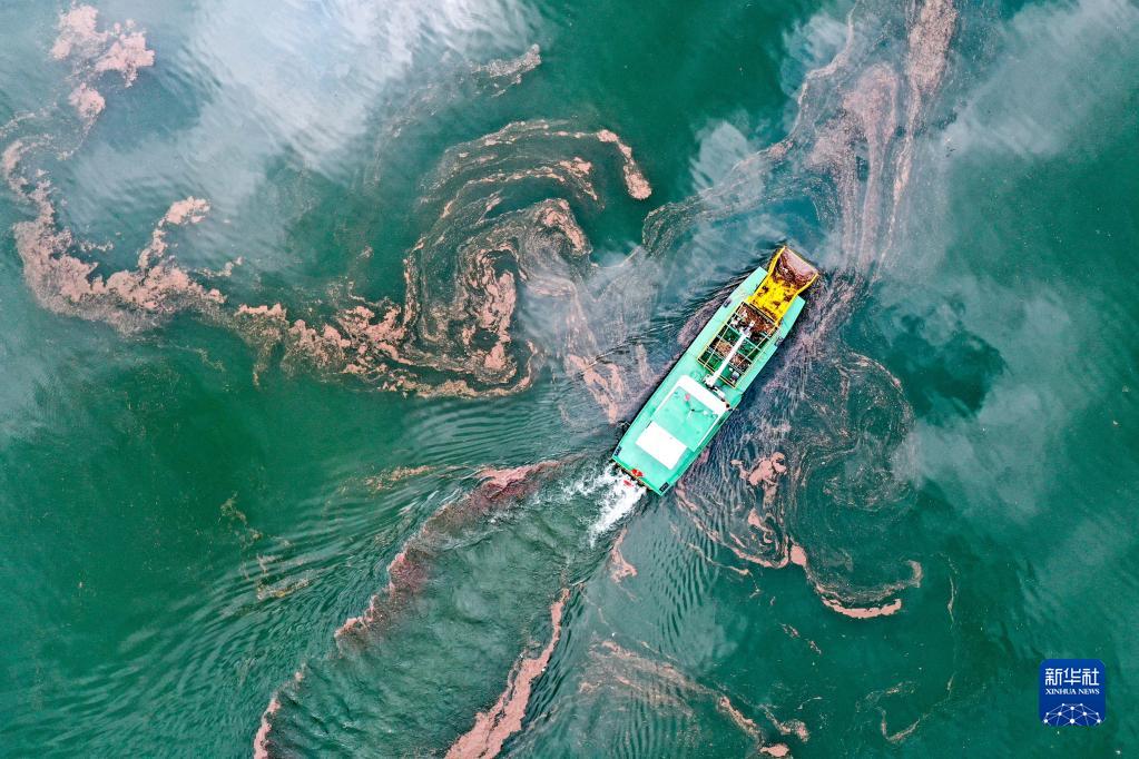 垃圾清理船在貴州省黔西市烏江源百里畫廊江面上清理垃圾(2022年6月2日攝)。新華社記者 歐東衢 攝