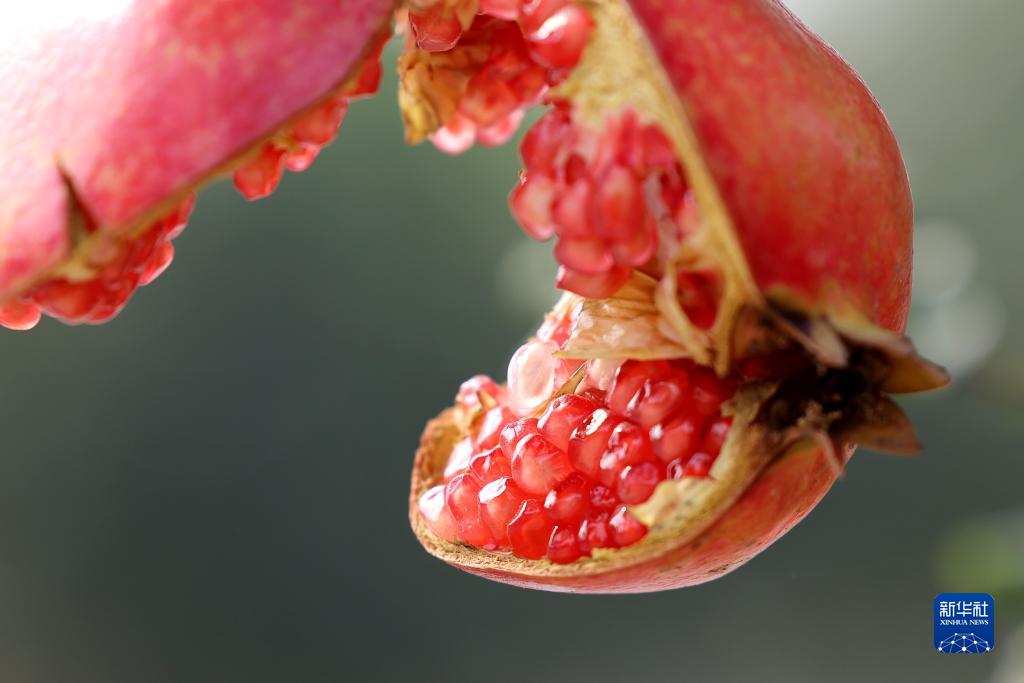 在山東省棗莊市嶧城石榴園拍攝的開裂的石榴(10月2日攝)。