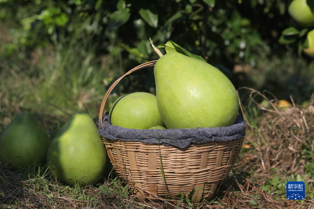 在四川省武勝縣鳴鐘鎮拍攝的紅心蜜柚(10月1日攝)。