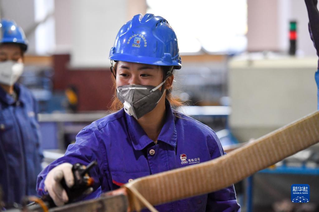 1997年出生的楊萌是哈電集團哈爾濱電機廠有限責任公司線圈分廠水電定子絕緣班班組長。今年是她自2017年入職以來,經歷的第6個在生產線上的國慶長假。由于連年考核優秀,2022年楊萌被任命為水電定子絕緣班班組長。
