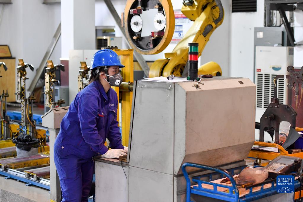 10月6日,在哈電集團哈爾濱電機廠有限責任公司的生產車間,楊萌查看設備運行參數。