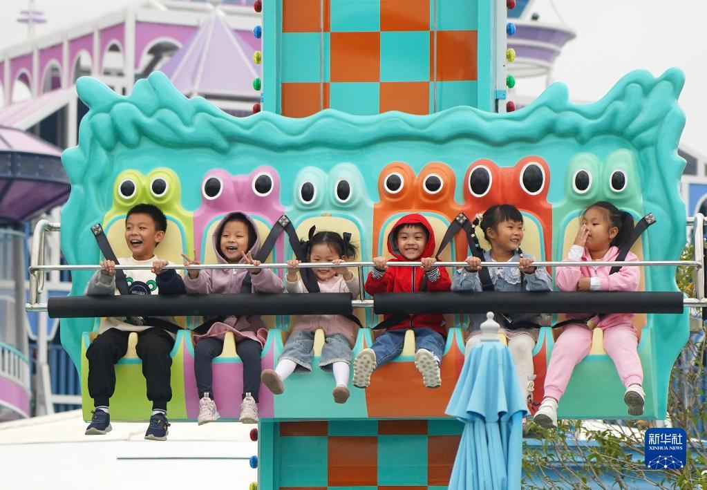 10月6日,在南昌市西湖區歡樂星際樂園,孩子們體驗太空主題的游樂項目。