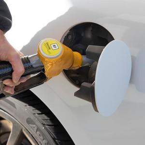 10月6日,在法國北部城市里爾,一名市民在歐尚超市的加油站加油。近日,法國道達爾集團旗下的許多加油站因燃油供應中斷而暫時關閉,導致其他加油站前排起長龍。
