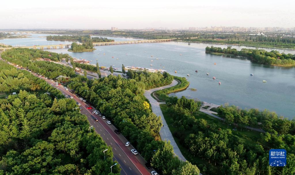2022年5月15日在河北石家莊拍攝的滹沱河一景(無人機照片)。