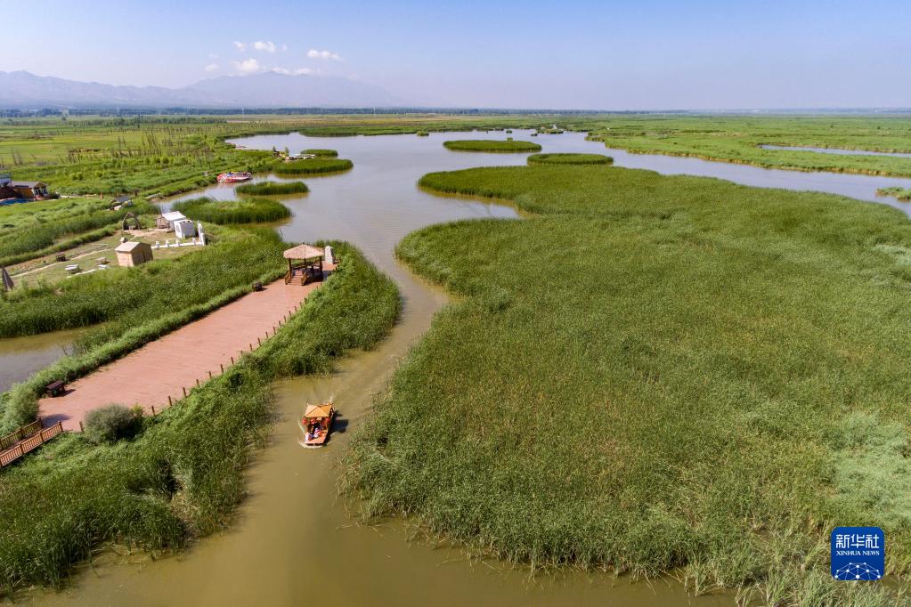 這是2022年7月28日拍攝的山西大同桑干河國家濕地公園一角(無人機照片)。