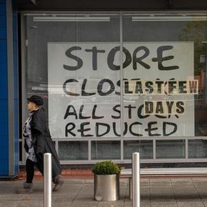 10月7日,在英國曼徹斯特,一名行人走過一家關閉的店鋪。