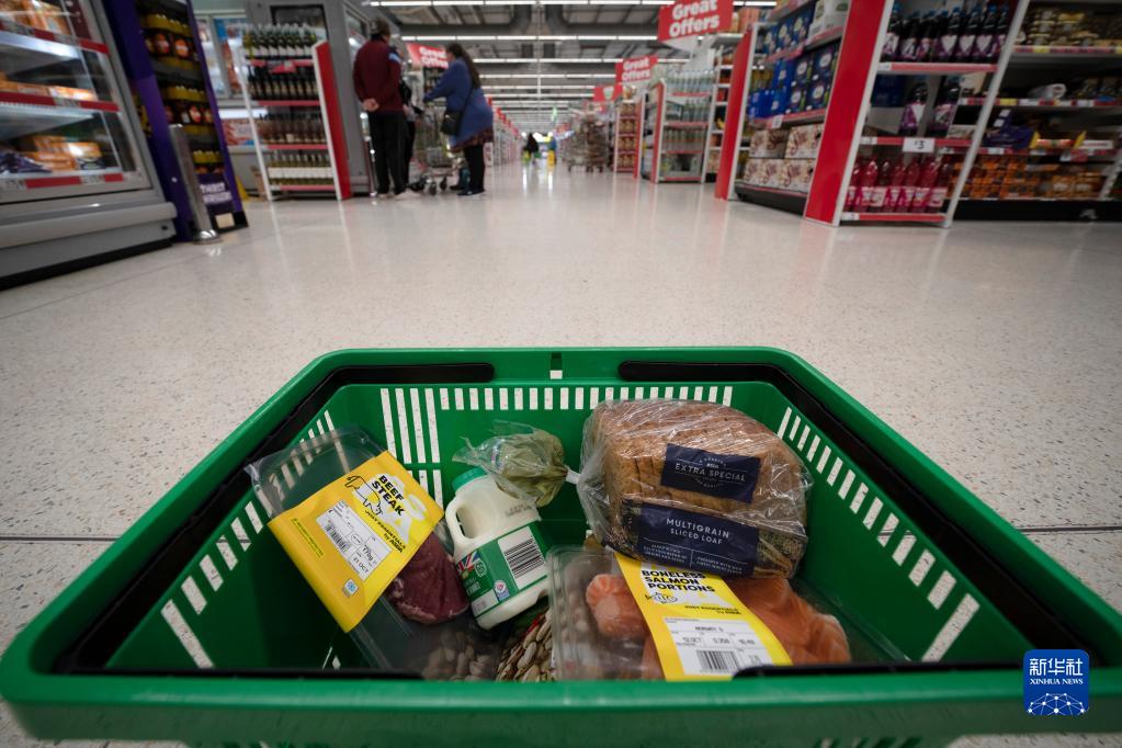 這是10月7日在英國曼徹斯特一家超市拍攝的購物籃內的商品。