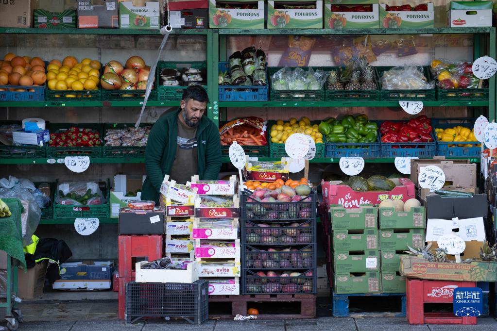 10月7日,一名商販在英國曼徹斯特街頭售賣水果。