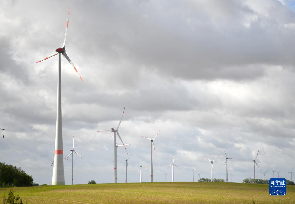 這是9月15日在德國勃蘭登堡州拍攝的風電設施。