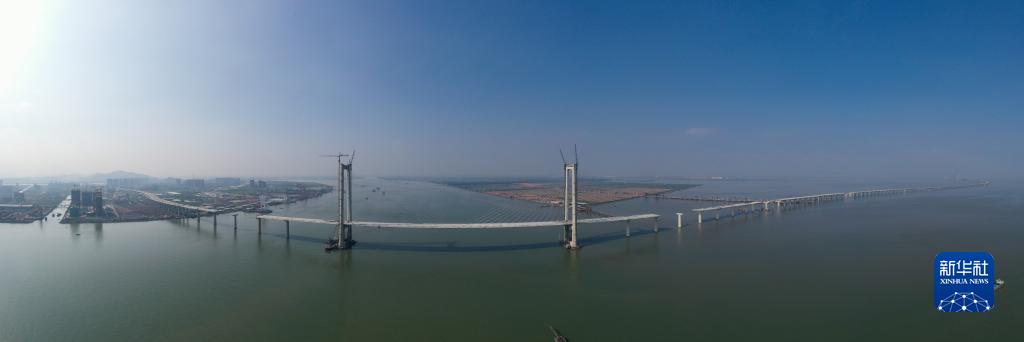 建設中的深中通道中山大橋(10月8日攝,無人機照片)。