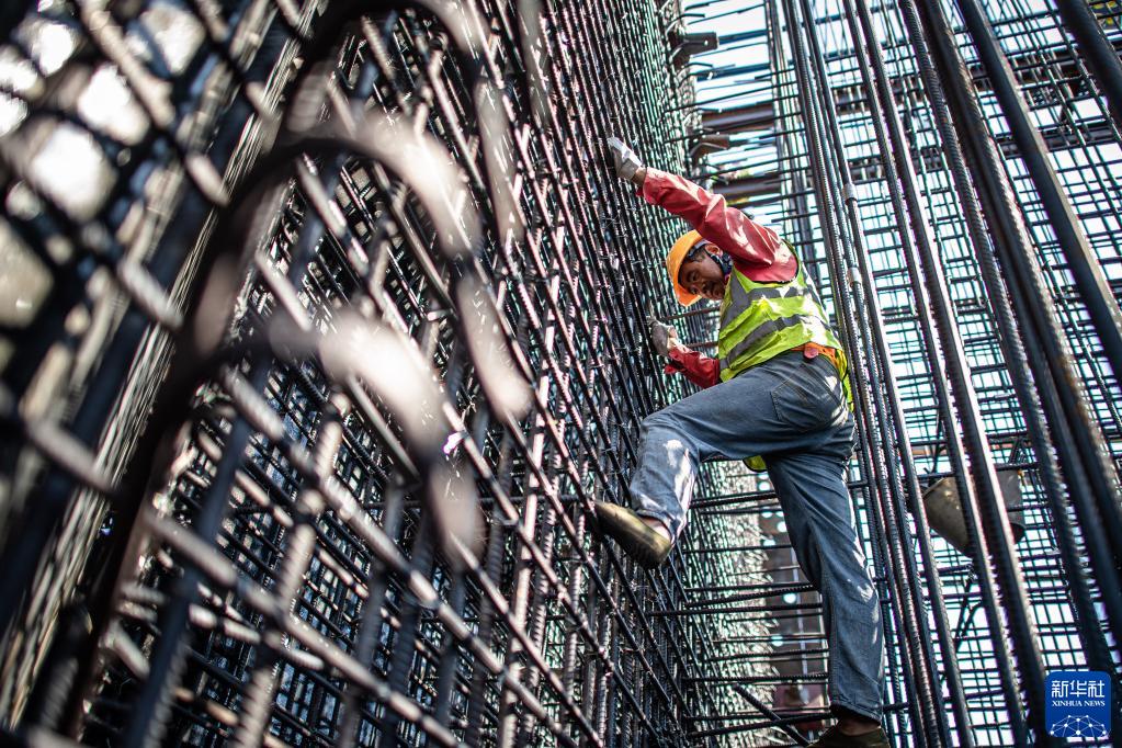 10月2日,中鐵七局工人在滬渝蓉高鐵武宜段龍泉河特大橋施工現場作業。