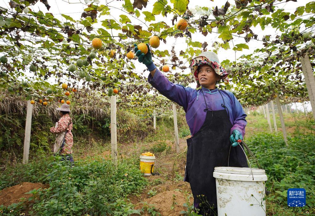 10月8日,貴州省黔東南苗族侗族自治州丹寨縣興仁鎮臺辰村村民在收獲吊瓜。新華社發(黃曉海 攝)