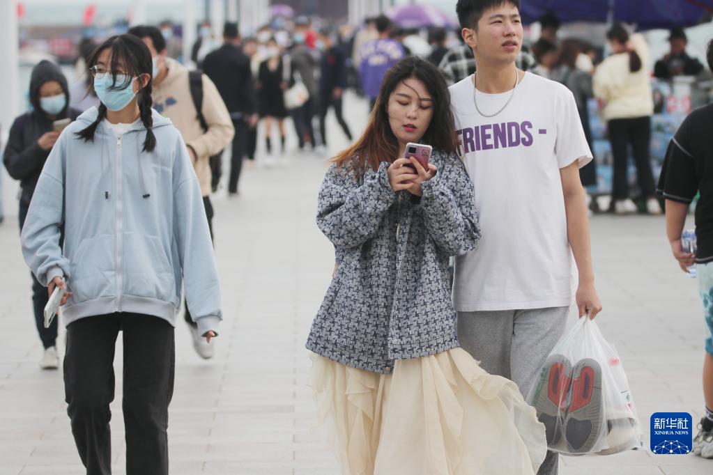 10月8日,游客在山東青島棧橋風景區游玩。