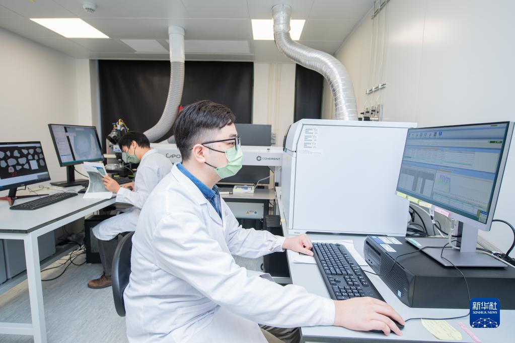 10月6日,澳門科技大學月球與行星科學國家重點實驗室博士生梁柏健在實驗室工作。新華社記者 張金加 攝