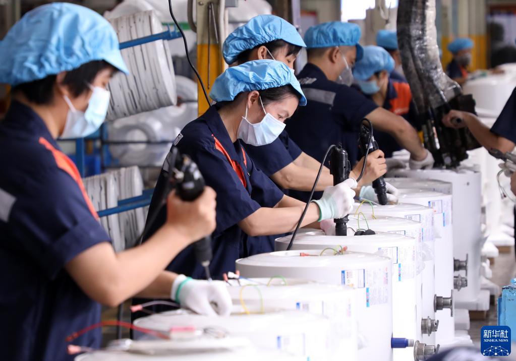 廣東萬和電氣工人在生產線作業(9月30日攝)。