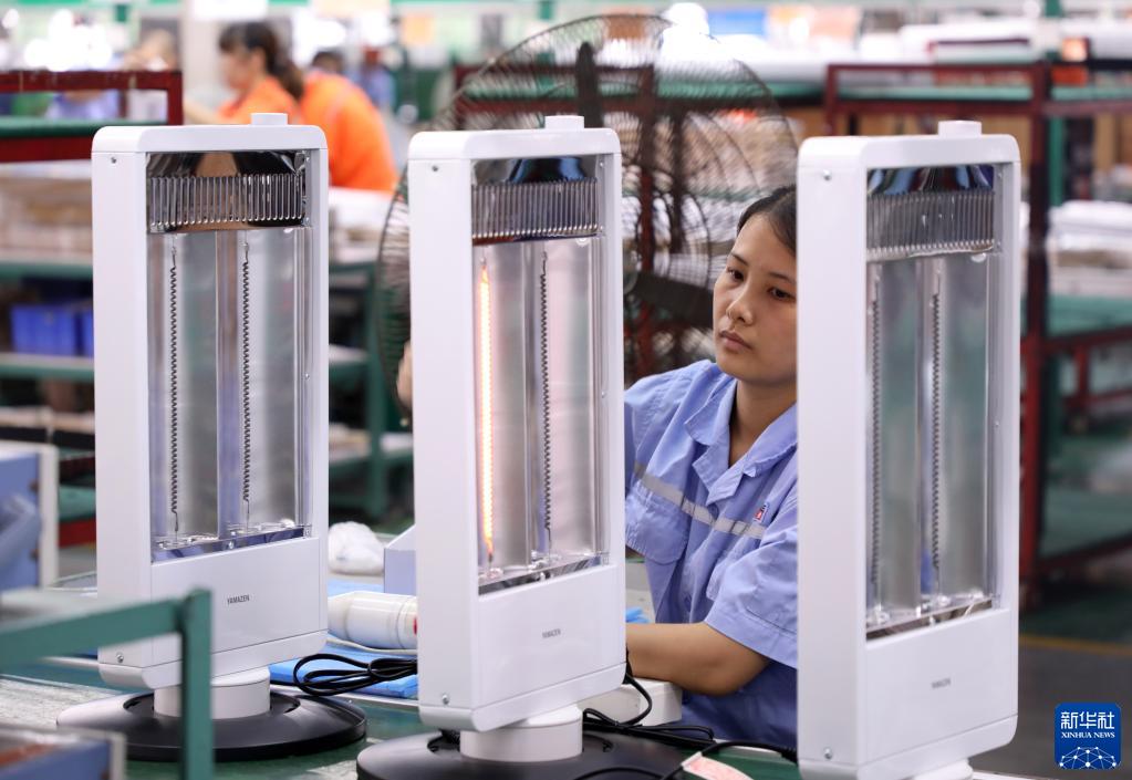 廣東世聯電器員工在檢測電暖器(9月29日攝) 。