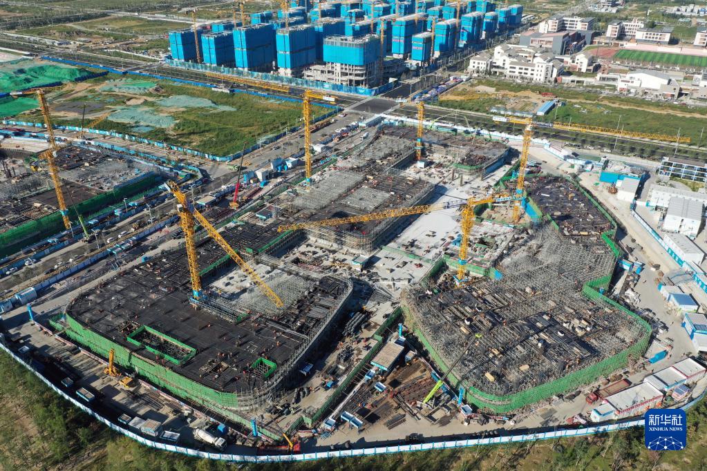 2022年9月7日拍攝的位于雄安新區啟動區的中國星網雄安新區總部大樓建設施工現場(無人機照片)。