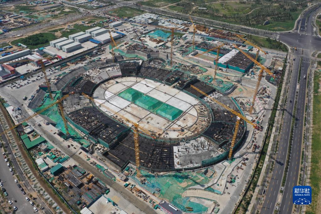 2022年9月1日拍攝的位于雄安新區啟動區的體育中心項目建設現場(無人機照片)。