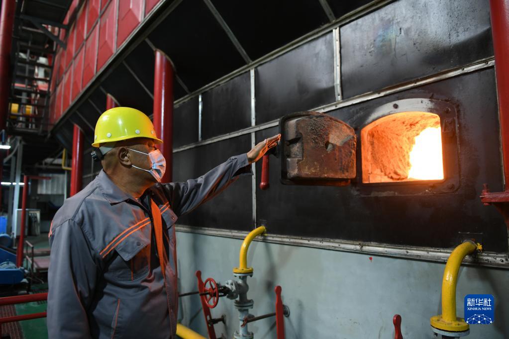 10月10日,呼和浩特市旭陽熱力供暖有限公司北熱源廠工人在查看鍋爐運行情況。