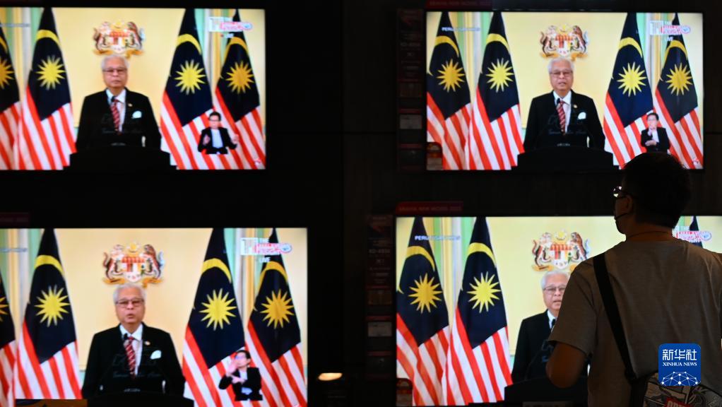 10月10日,一名男子在馬來西亞吉隆坡一家電器店觀看馬來西亞總理伊斯邁爾電視講話直播。